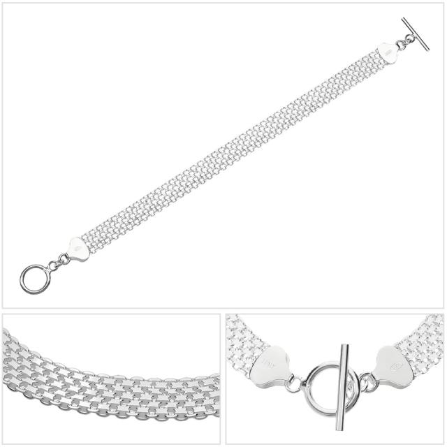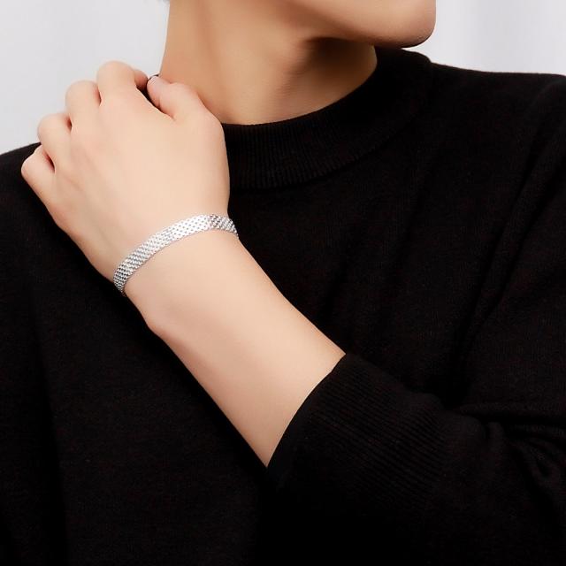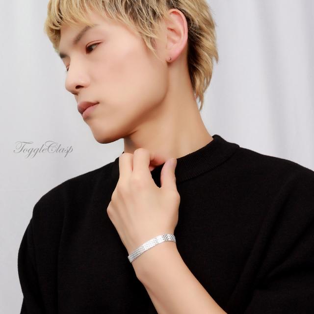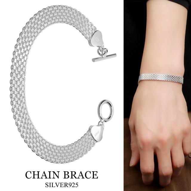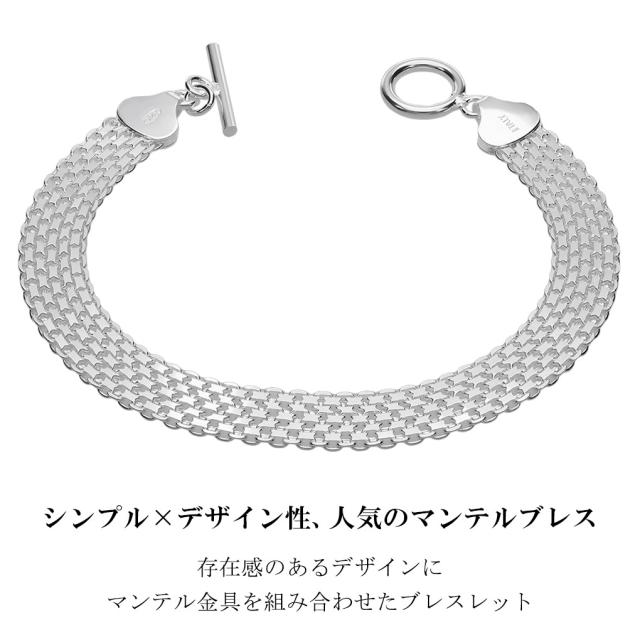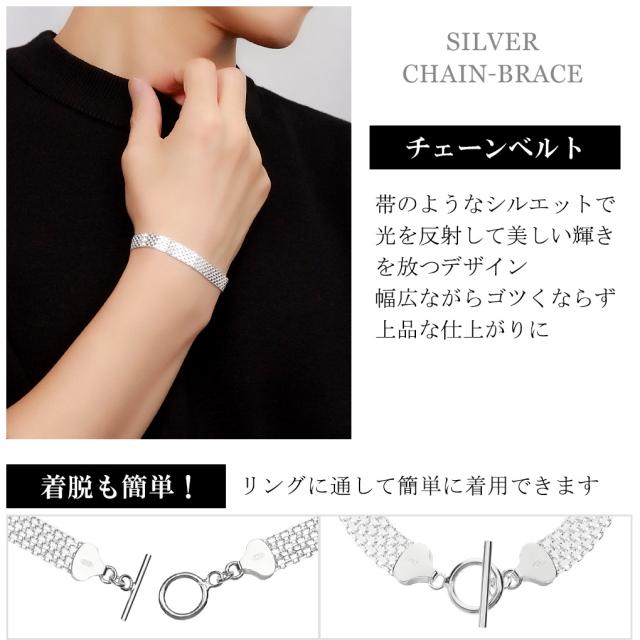シルバー925 メッシュ ベルト チェーン ブレスレット シルバー マンテル Tバー 18〜19cm シンプル マンテルチェーン デザインチェーン 韓国