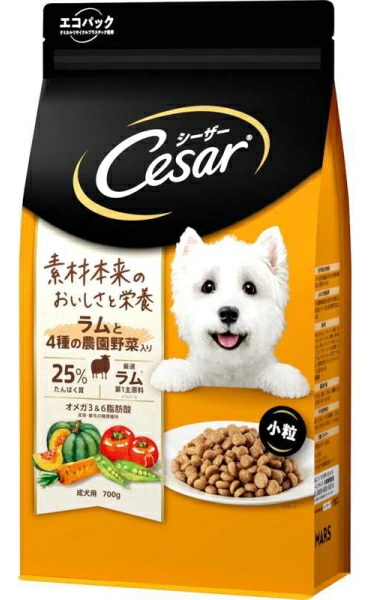 マースジャパン シーザードライ 成犬用 ラムと4種の農園野菜入り 小粒 700gx12個(ケース販売)