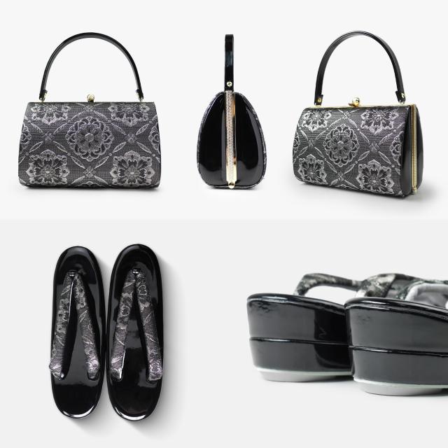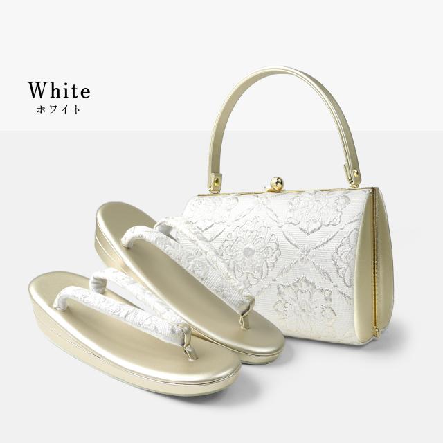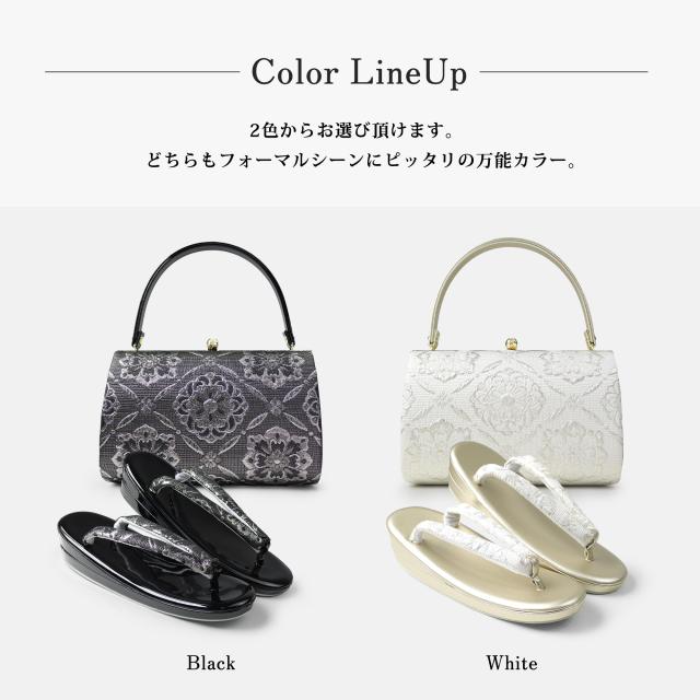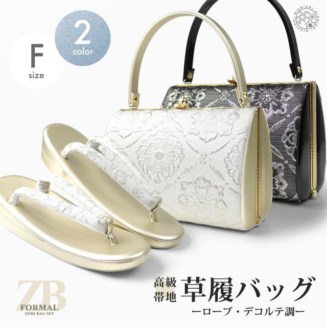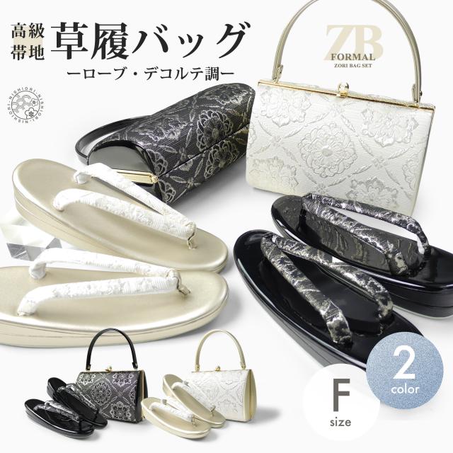 草履バッグ 2点セット ローブデコルテ調 帯地 フォーマル 選べる2色 ブラック ホワイト 5.5cmヒール フリーサイズ 草履 和装 着物 和装バッグ 振袖