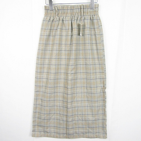 【中古】未使用品 アズノウアズ as know as スラリタイトスカート ロング丈 レーヨン ベージュ チェック kz10503 レディース