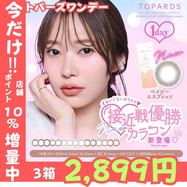 【在庫限り】【3箱×10枚】トパーズ ワンデー TOPARDS 1Day カラー 指原莉乃 さっしー 度あり 度なし 4色限定