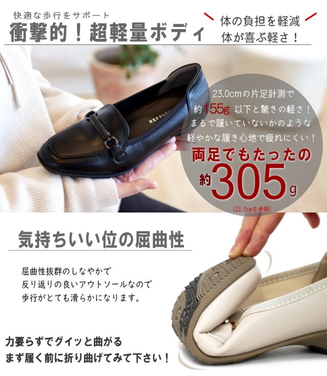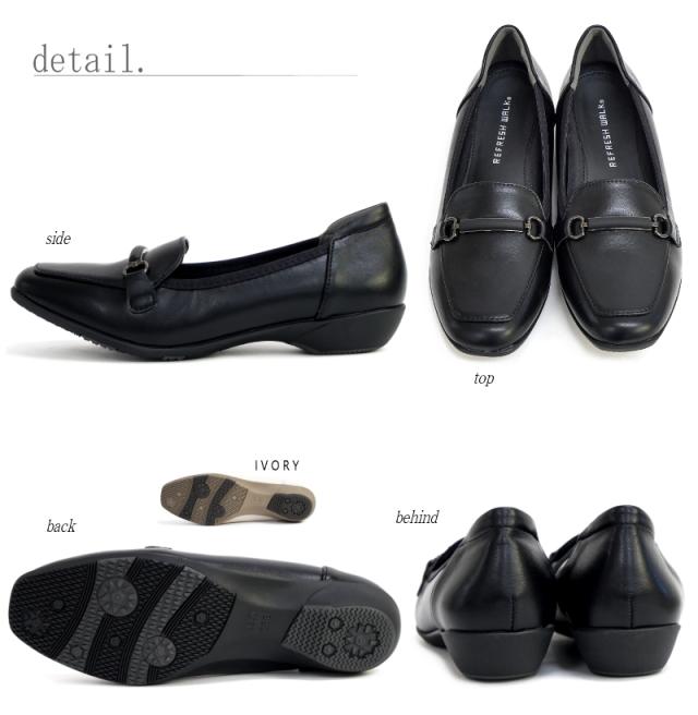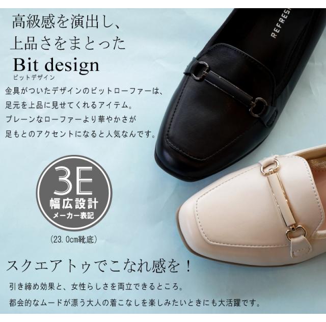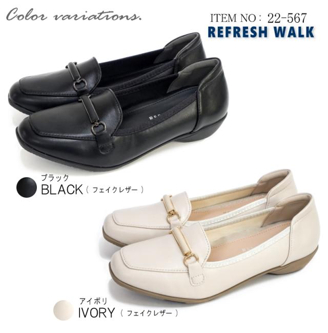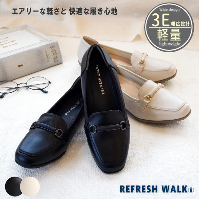 リフレッシュ ウォーク REFRESH WALK パンプス ビットローファー 靴 レディース 超軽量 抗菌 防臭 スクエアトゥ フラット 黒 アイボリ 耐滑 柔らかい 仕事 冠婚葬祭 卒入学 3e 屈曲