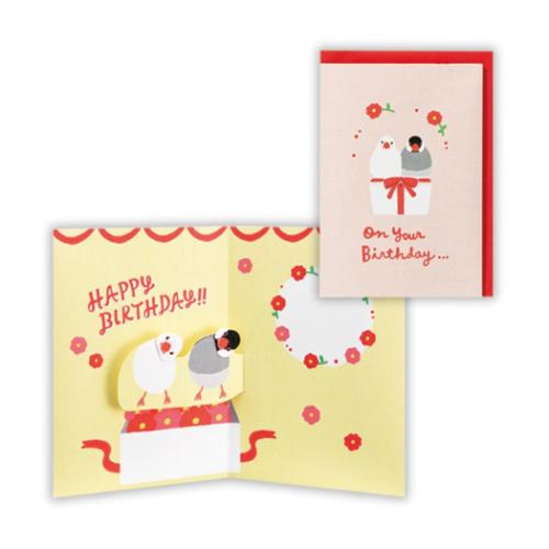 「グリーティングカード 誕生お祝い 立体カード ペット ペア文鳥2 メッセージカード グッズ メール便可」