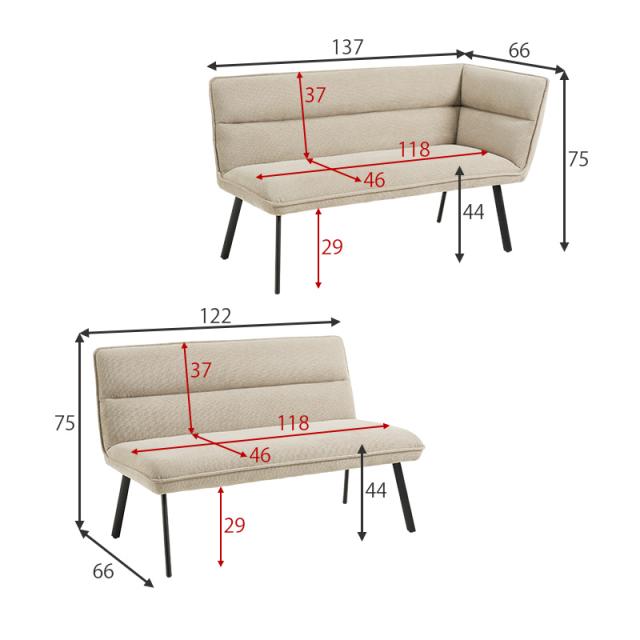 ■サイズ:テーブル:(約)幅138×奥行80×高さ70cm、片肘:(約)幅137×奥行66×高さ75×座面高44cm、肘なし:(約)幅122×奥行66×高さ75×座面高44cm■素材:テーブル:天板 合成樹脂化粧繊維板(メラミン樹脂) フレーム スチール、ソファ: フレーム 天然木 脚部 スチール 張地 ポリエステル