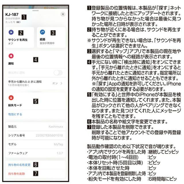 カシムラ KJ-187 MyTag 見つかるタグ 紛失防止 ホワイト Apple社正規認証品 KJ187 お取り寄せ 【ネコポス対応品1】タグ 盗難