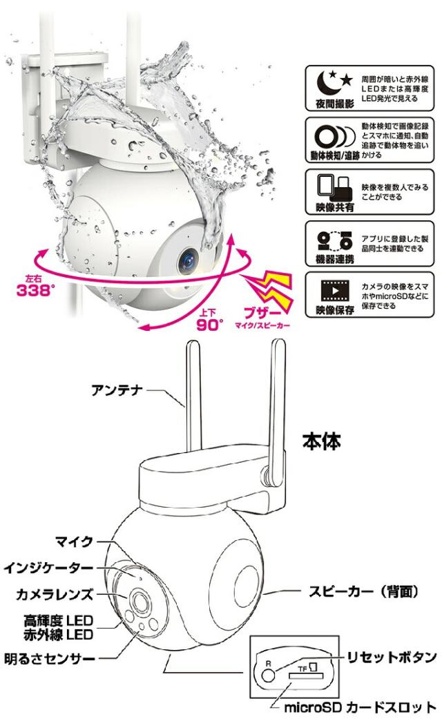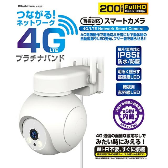 カシムラ KJ-211 スマートカメラ 4G AC電源 防水 ホワイト 屋外/屋内対応 KJ211 お取り寄せ カメラ 防犯 防犯カメラ 監視カメラ