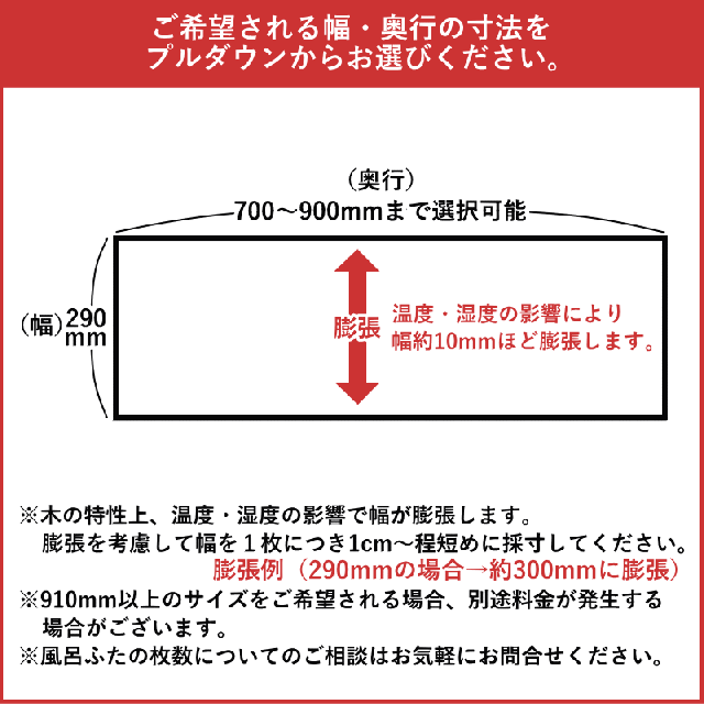 | サイズ | 幅290mm×奥行700〜900mm×厚み25mm |