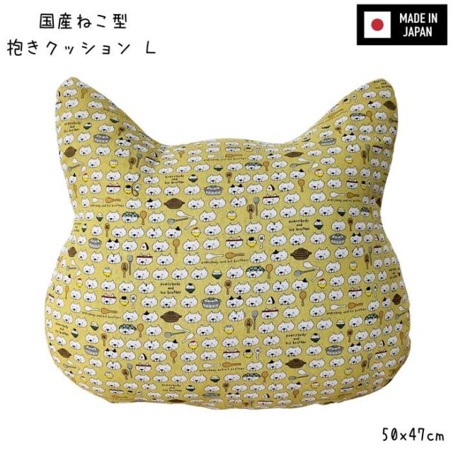 国産ねこ型抱きクッションL 50x47cm ごはん ふっくらふわふわ抱き心地 かわいいねこ顔シルエット 日本製