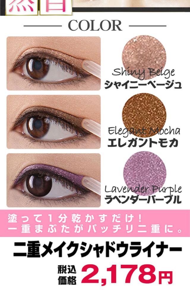 自然な二重をつくるアイシャドウ&リキッドライナー!二重メイクとアイシャドウが同時にできる!