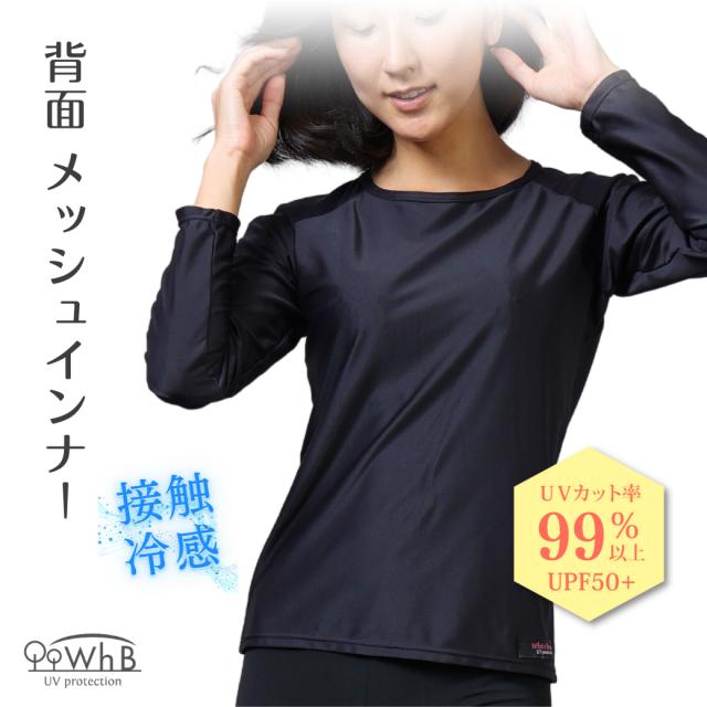背面メッシュインナー 背中メッシュ インナー 日本製 長袖 レディース テニス ゴルフウェア 紫外線対策 UVカット 日焼け対策 接触冷感 ストレッチ 蒸れない ランニング UVカットアンダーウエア インナーシャツ 機能性インナー ブラック ホワイトビューティー 【送料無料】