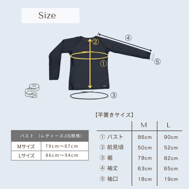 Mサイズ:79〜87cm Lサイズ:86〜94cm(バスト:レディースJIS規格)