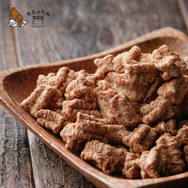 ■栄養バランスをサポート 米麹にはアミノ酸やビタミンB群、ミネラルが含まれており、愛犬のエネルギー代謝を支える成分がぎっしり。玄米を使用することで、ビタミンやミネラルを自然な形で摂取でき、筋肉や毛並みの健康維持に役立ちます。さらに、軽いサクサク食感は噛む力が弱いシニア犬や小型犬でも安心して食べられるサイズ感です。