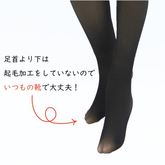 1200デニールの厚めの生地感に加え、内側を起毛させているので温かな履き心地です。
