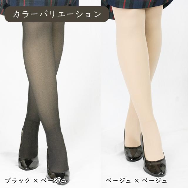 1200デニールの厚めの生地感に加え、内側を起毛させているので温かな履き心地です。 真冬の寒さのとき、暖かさも事前な透け感も諦めたくない! そんな女性にピッタリの嬉しいタイツです。 ブラック×ベージュ⇒内側のベージュカラーが透けて見えるので、透け感のあるタイツを履いているみたいな不思議な見た目です。 ベージュ×ベージュ⇒素肌っぽい明るめのカラーで、ストッキングみたいな見た目です。 1200デニールなのでもちろん、透けてません! |
