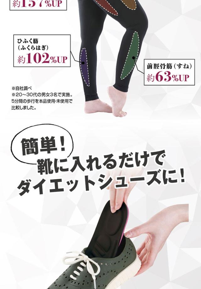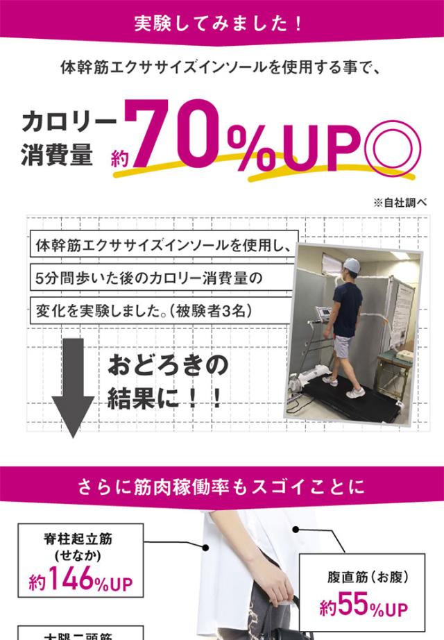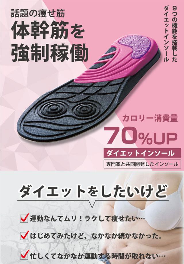 - 専門家と共同開発した体幹筋を強制稼働ダイエットインソール。カロリー消費量70%UPの謳い文句に引かれ購入しました。内転筋アシストゾーンと内側アーチゾーンは足に当たっている感覚がないので、カロリー消費量...