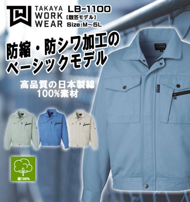 タカヤ商事 タカヤワークウェア 長袖ブルゾン LB-1100 秋冬 サイズM〜LL 綿100% 防シワ素材 作業服