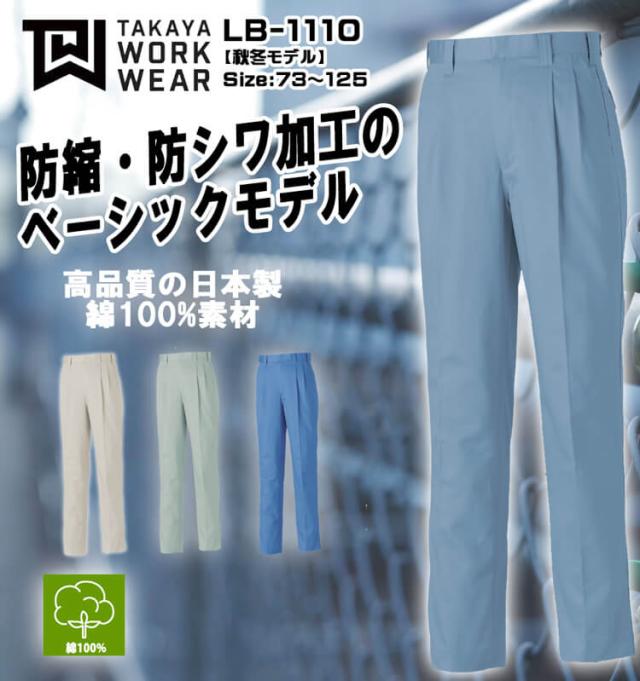 タカヤ商事 タカヤワークウェア ツータックパンツ LB-1110 秋冬 サイズ73cm〜88cm 綿100% 防シワ素材 作業服