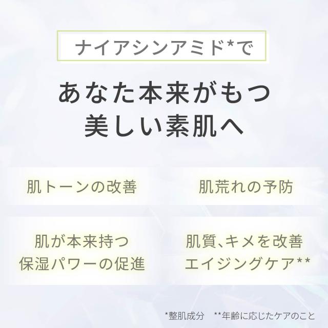 30〜50代の忙しい女性の肌悩みに寄り添い、原液濃度で配合されたナイアシンアミド*が、ザラつきや乾燥をケア。