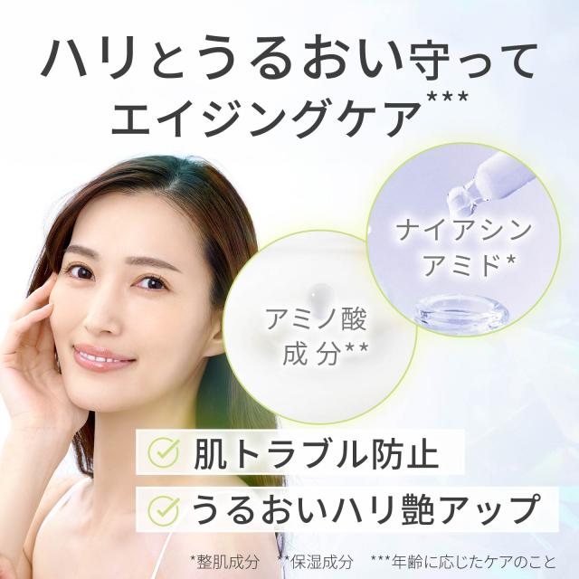 ナイアシンアミド*美容液は、肌荒れを防ぎながら、うるおいとハリを与えるエイジングケア**に最適なスキンケアアイテムです。