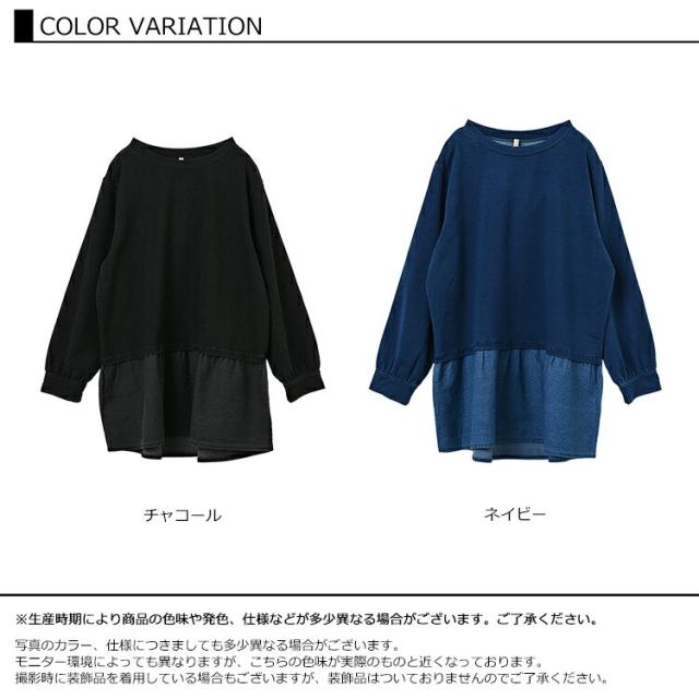 送料無料※沖縄/北海道対象外 大きいサイズ レディース カットデニムプルオーバー 長袖 切り替え チュニック ミニ裏毛 トップス LL/3L/4L/5L ゆったりサイズ ぽっちゃり女子 プラスサイズ