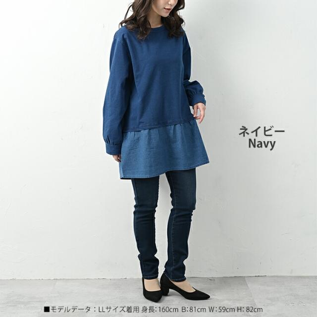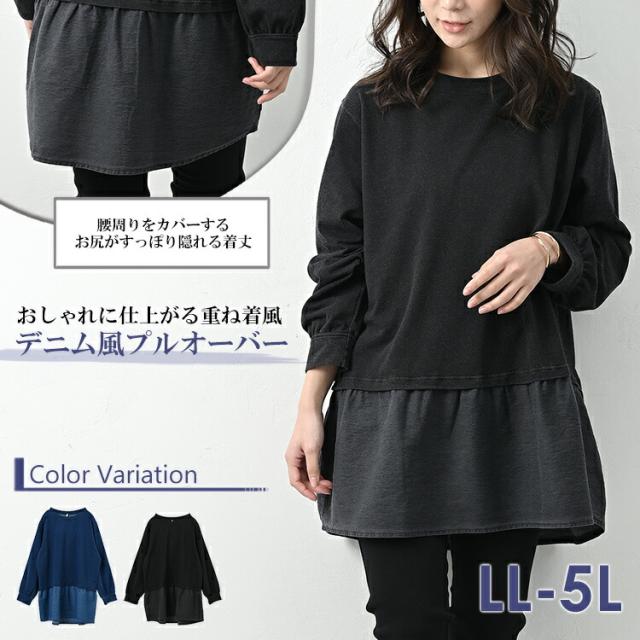 お洒落な重ね着風カットデニムプルオーバー。 XXXXL 2XL 3XL 4XL 長袖トップス ゆったりサイズ ぽっちゃり女子 プラスサイズ 大きいサイズ レディース 長袖トップス 長袖プルオーバー 長袖チュニック カットデニム デニム風 無地 Uネック クルーネック ラウンドネック 丸首 長袖 10分袖 ミニ裏毛 重ね着風 フェイクレイヤード 切替 切り替え 綿混 春服 秋服 冬服 春物 秋物 冬物 春トップス 秋トップス 冬トップス 体型カバー ゆったり 大きめ お尻が隠れる着丈 お尻すっぽり丈 チュニック丈 大人 カジュアル フェミニン ナチュラル きれいめ かわいい 着こなし おしゃれ 定番 春コーデ 秋コーデ 冬コーデ ファッション 大きめ 女性 婦人用 ミセス 30代 40代 50代 2025 春新作 春 秋 冬 灰色 紺 LL 3L 4L 5L 13号 15号 17号 19号 cla-saw-tp0482