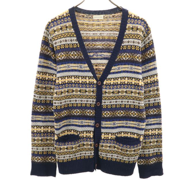 ナノユニバース ネイティブ柄 長袖 Vネック ニットカーディガン 42 マルチ nano universe メンズ