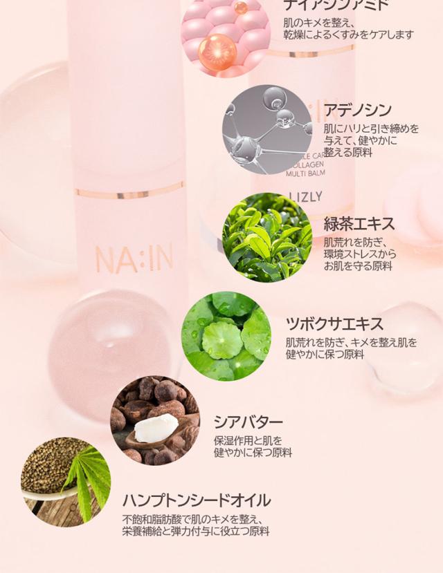 LIZLY NA:IN ナインマルチスティックバーム コラーゲン ハリ おでこ 目元 首 しわ 乾燥 保湿 透明感 潤い 韓国コスメ スキンケア オールインワン