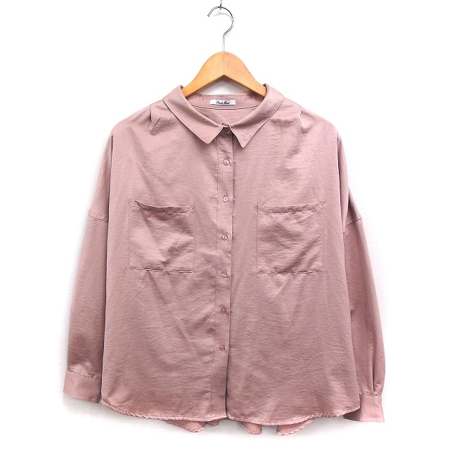 【中古】フリーズマート Free's Mart ワイド シャツ ブラウス 長袖 無地 サテン 光沢 FR ピンク /FT39 レディース