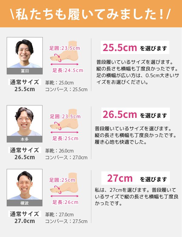 甲高、幅広の方→「0.5cm大きめ」