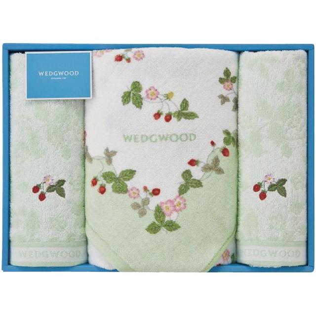【ギフト】ウェッジウッド ワイルドストロベリー バスタオル&フェイスタオル2P グリーン 【北海道・沖縄・離島配送不可】