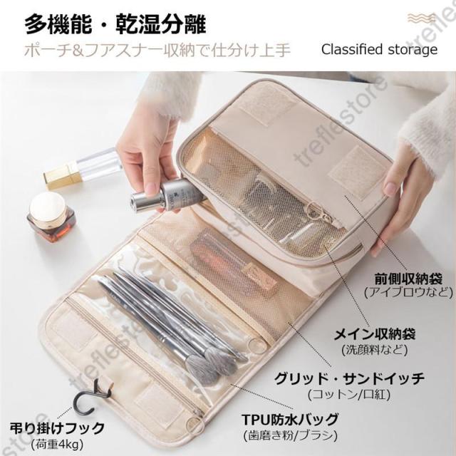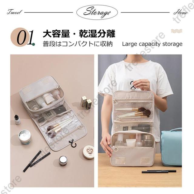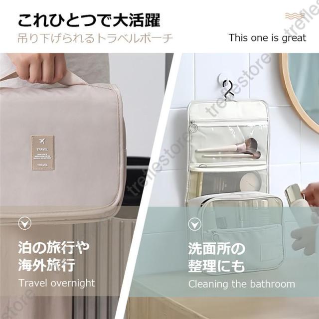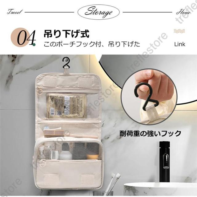 【ポイント5倍!】化粧ポーチ トラベルポーチ 吊り下げ 壁掛け 旅行 収納 大容量 洗面用具 バスルーム 洗面用具 旅行 ポーチ フック ハンガー 立てる収納 レディース C-06