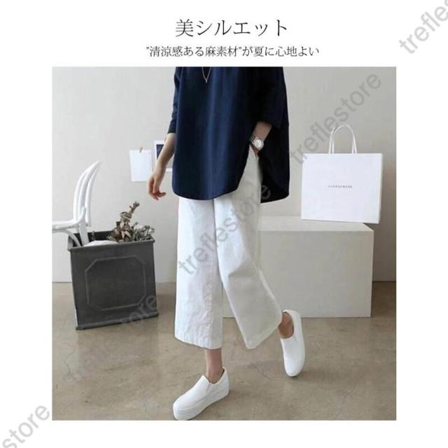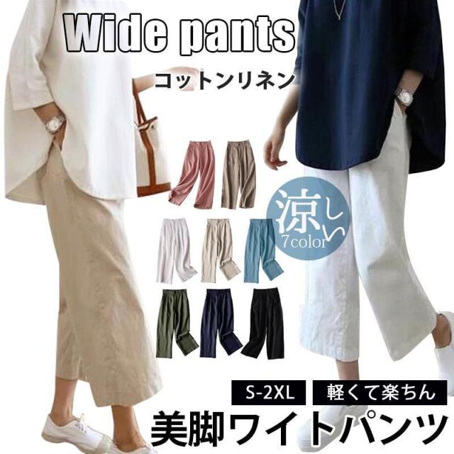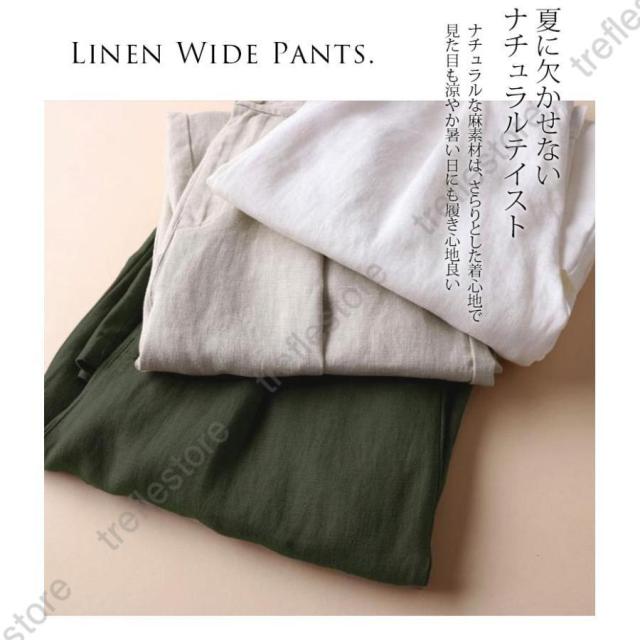 【ポイント5倍!】リネンパンツ ワイドパンツ レディース サルエルパンツ 洗える ゆったり ウエストゴム 美脚 体型カバー 30代 40代 50代 60代 涼しい イージーパンツ ガウチョ