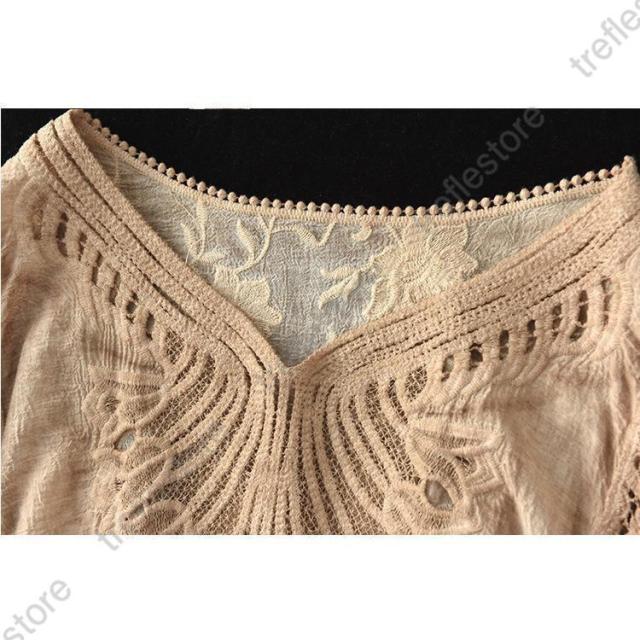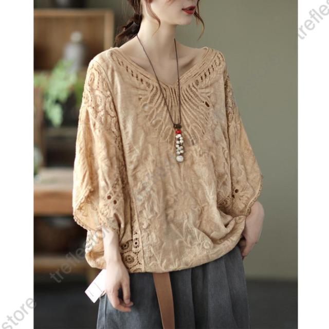 ブラウス ドルマスリーブ 総ース 刺繍 フラワー 透け感 体型カバー ディース