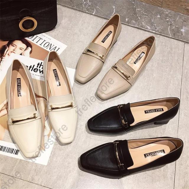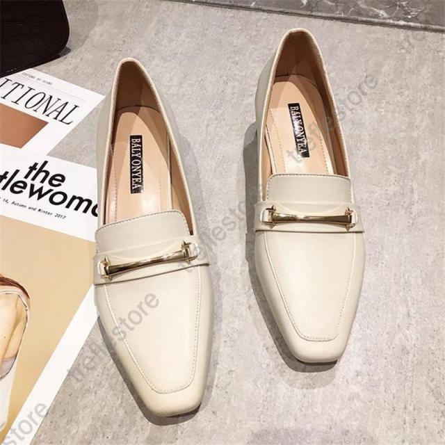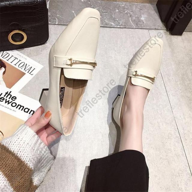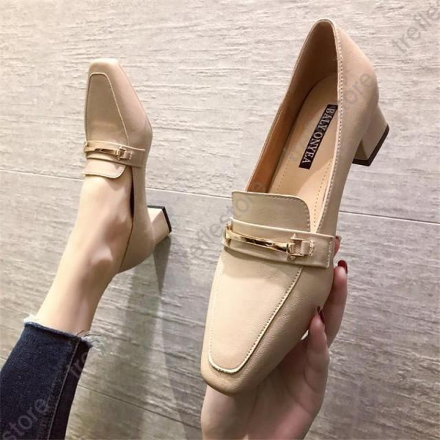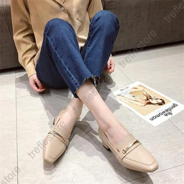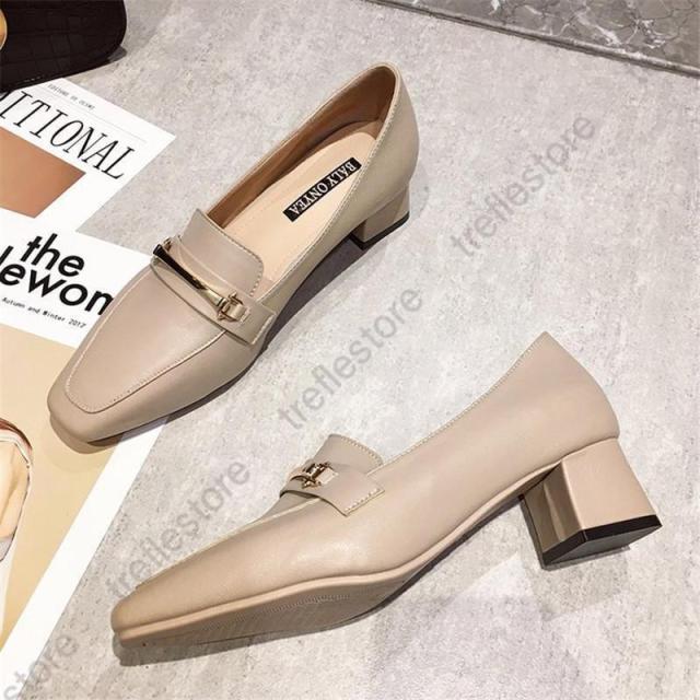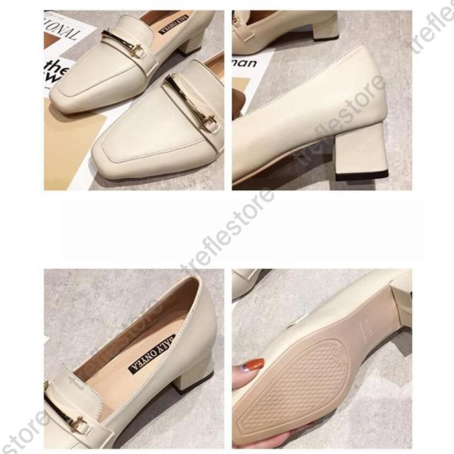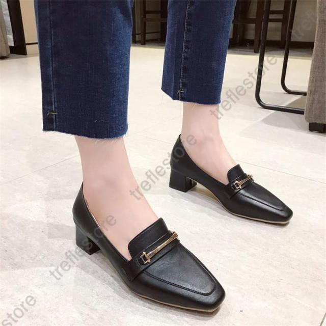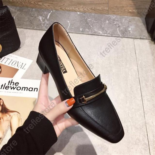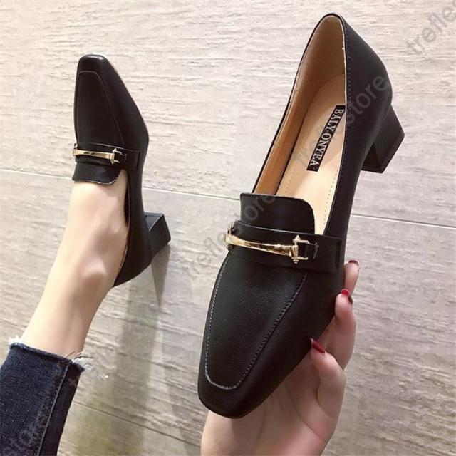 【ポイント5倍!】パンプス レディース ローファー スクエアトウ オックスフォード 中ヒール シューズ モカシン カジュアル 結婚式 披露宴 エレガント 上品