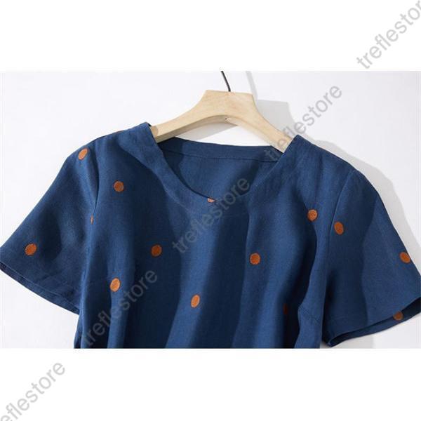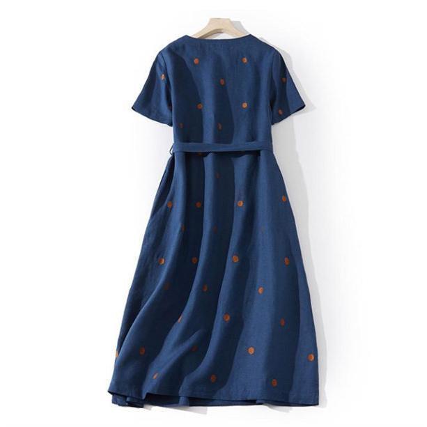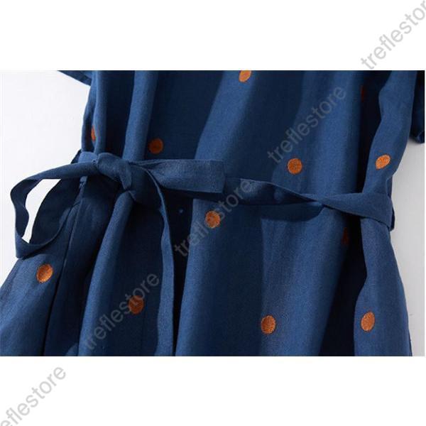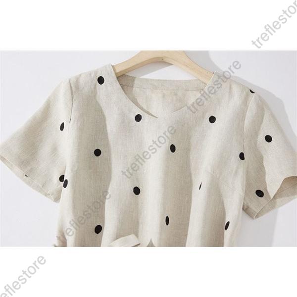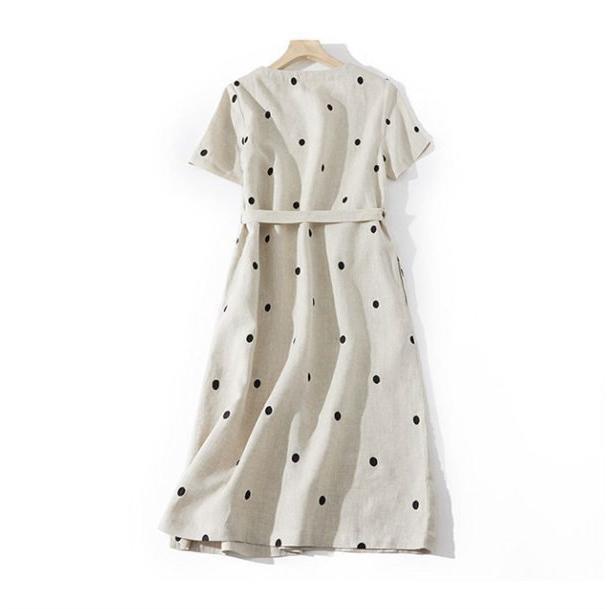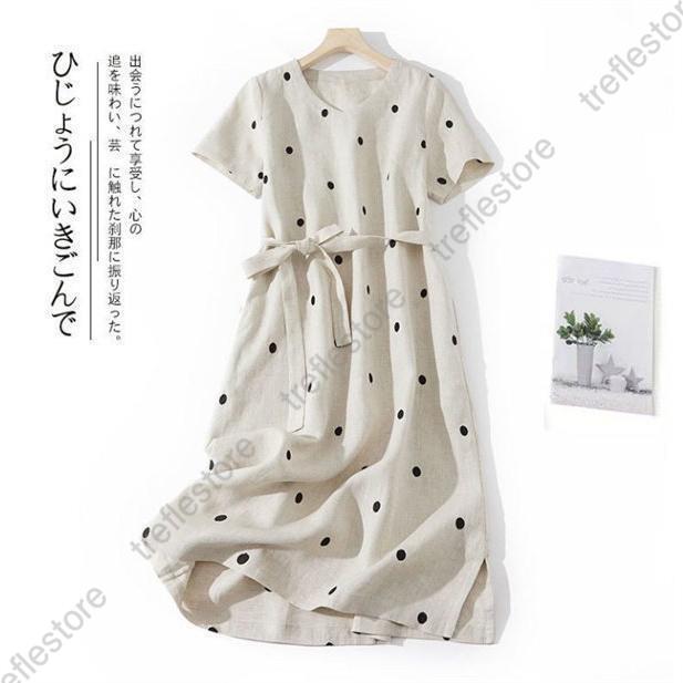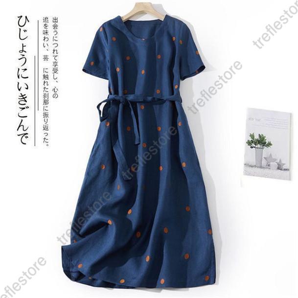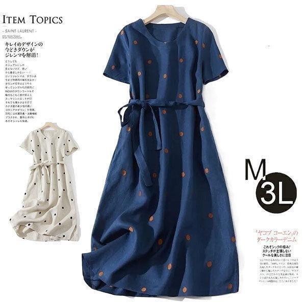 【ポイント5倍!】ワンピース 半袖ワンピース レディース ロングワンピース Aライン 体型カバー ドット柄 体型カバー 着痩せ 綿麻混 20代30代40代 大きいサイズ