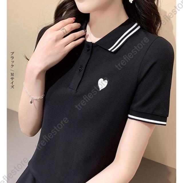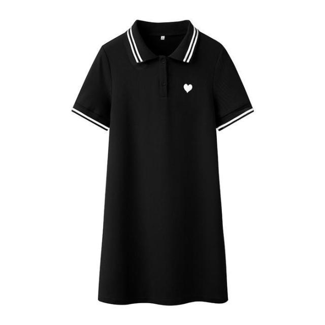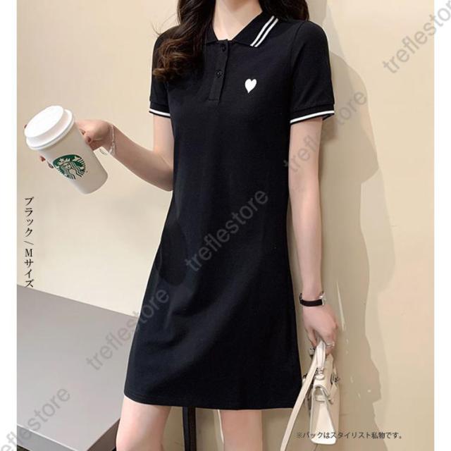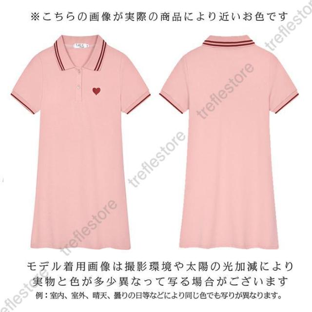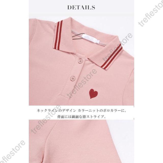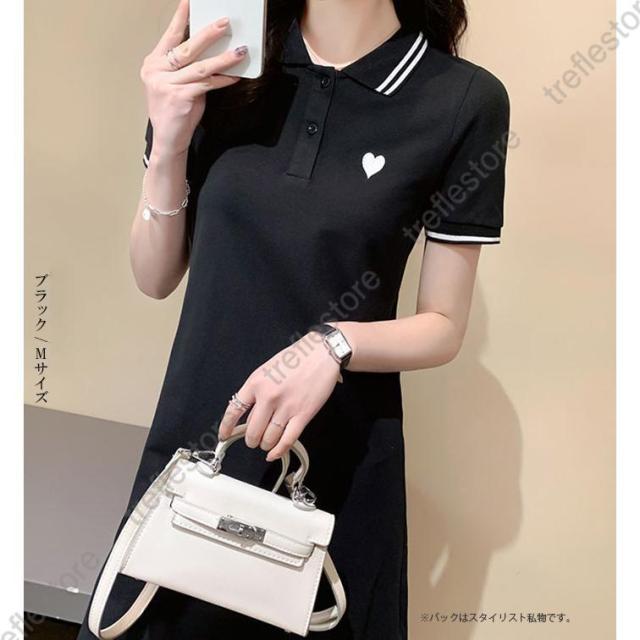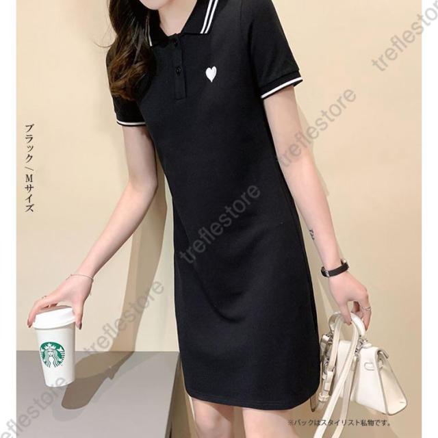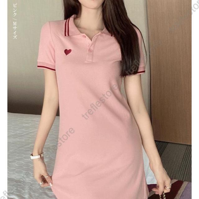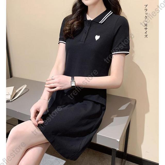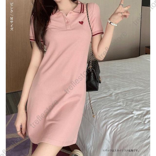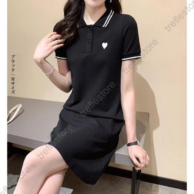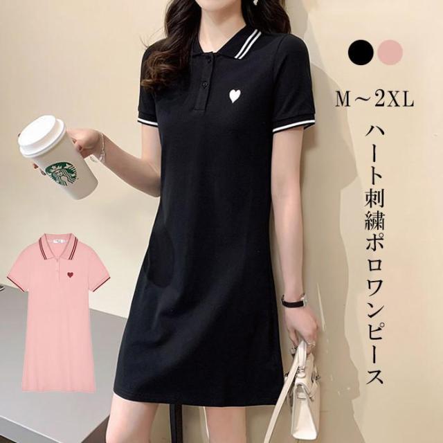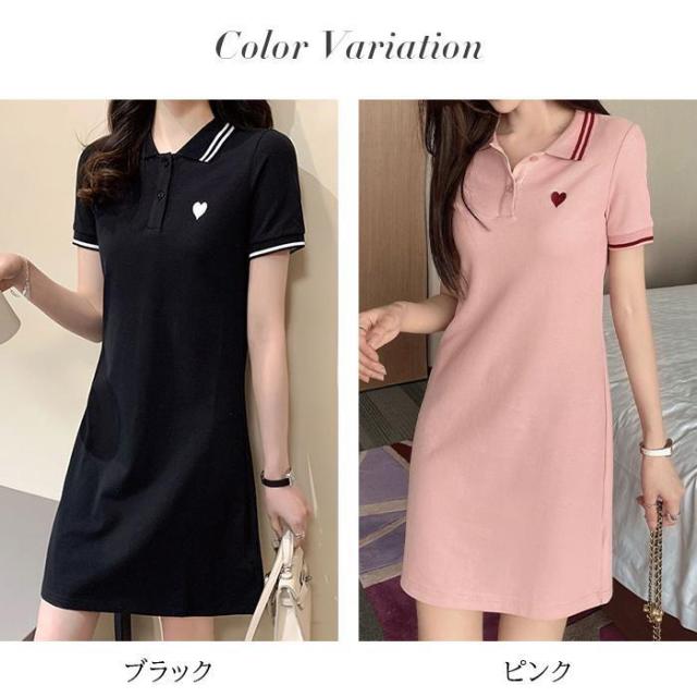 ワンピース レディース 半袖 刺繍 ミディアム丈 膝丈 可愛いゴルフウェア きれいめ シャツワンピース ハート刺繍ワンピース ダークエンジェル