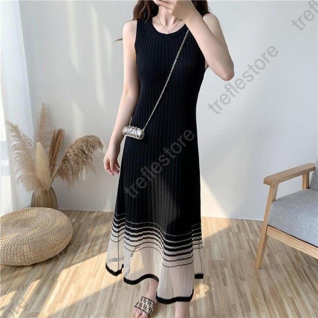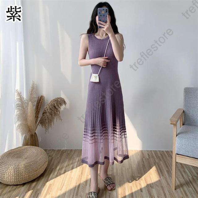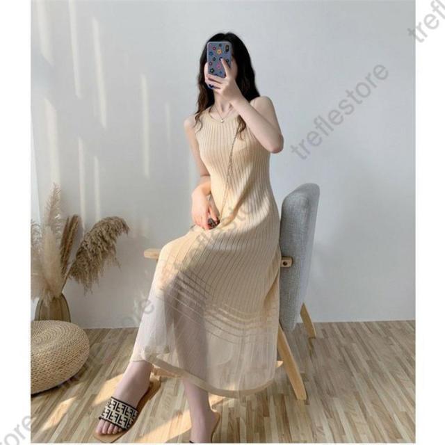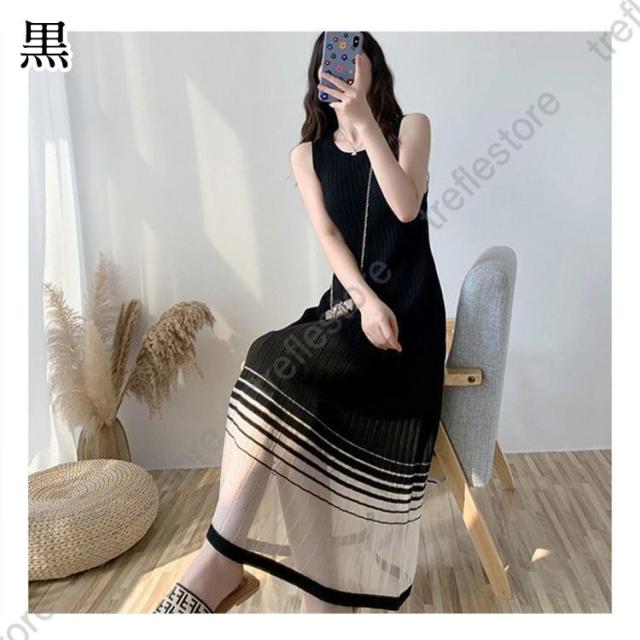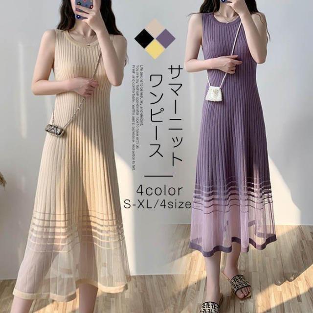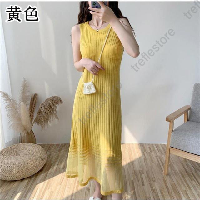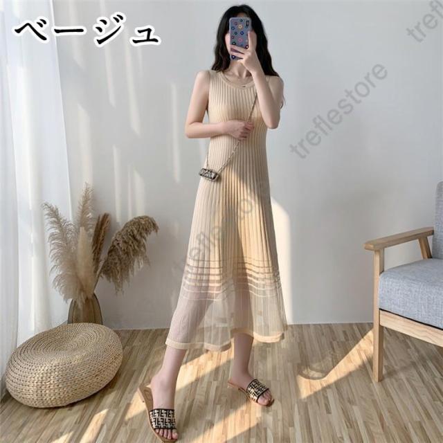 【ポイント5倍!】ワンピース レディース ロングワンピース ロング丈 サマーニット 涼しい ニットワンピ ノースリーブ タンクトップワンピース 着痩せ おしゃれ 夏 通勤 30代