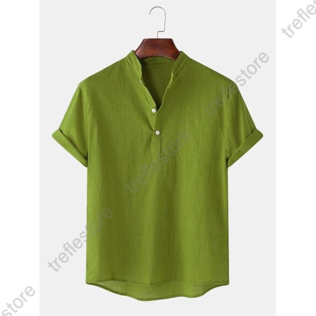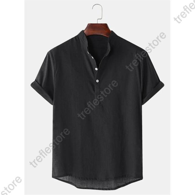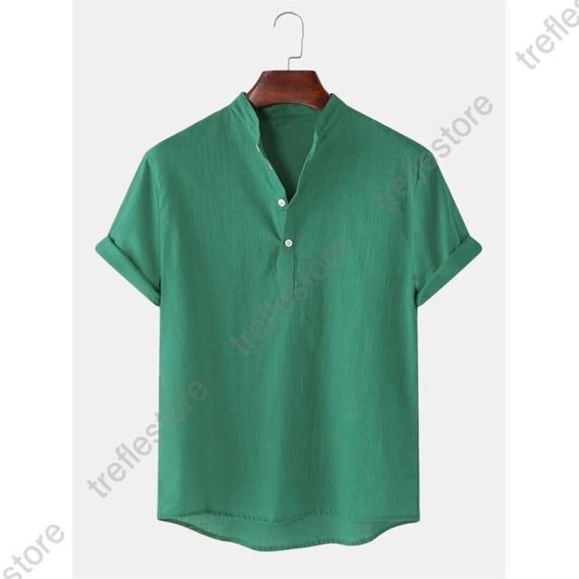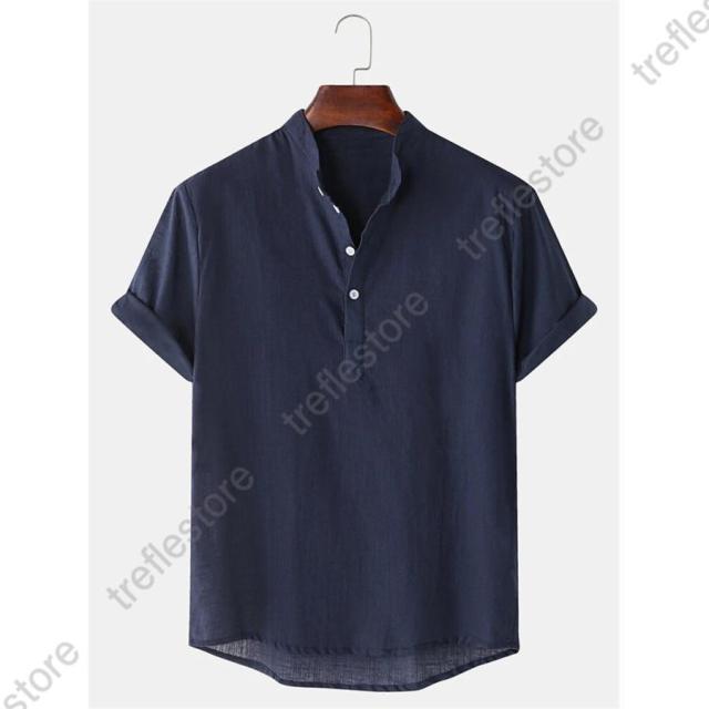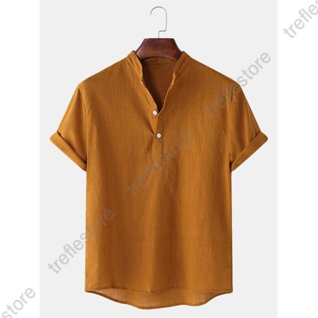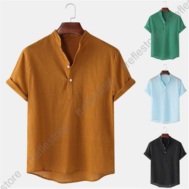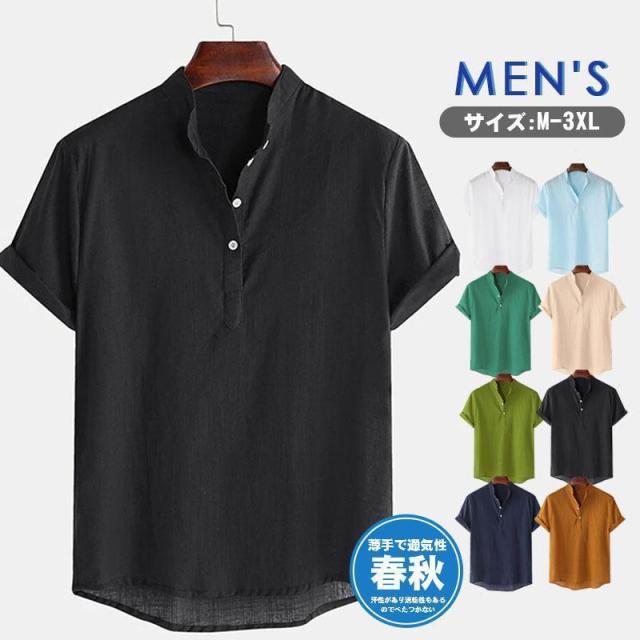 【ポイント5倍!】ポロシャツ ゴルフシャツ メンズ 半袖 スポーツ カジュアル ゆったり リネン風 立ち襟 トップス 麻 無地 シンプル 薄手 吸汗速乾 綿 ビジネス
