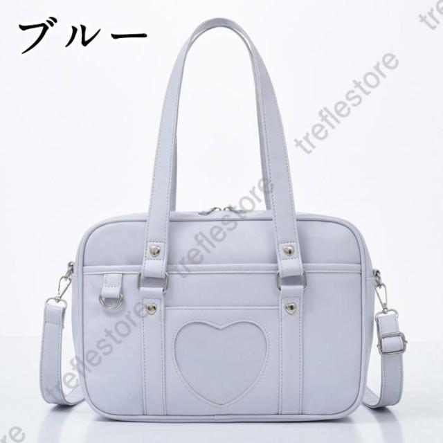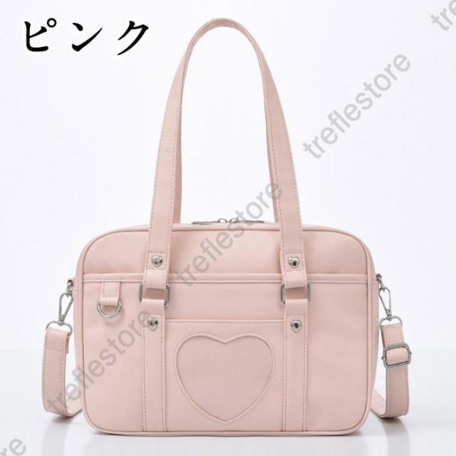 スクールバッグ 合皮 女子高生 スクバ ハート 2way ショルダーバッグ 肩掛け 斜めがけ Dカン付き 大容量 JK 女子高校生 入学 卒業式 入学式 通学 部活 学校 可愛い PUレザー