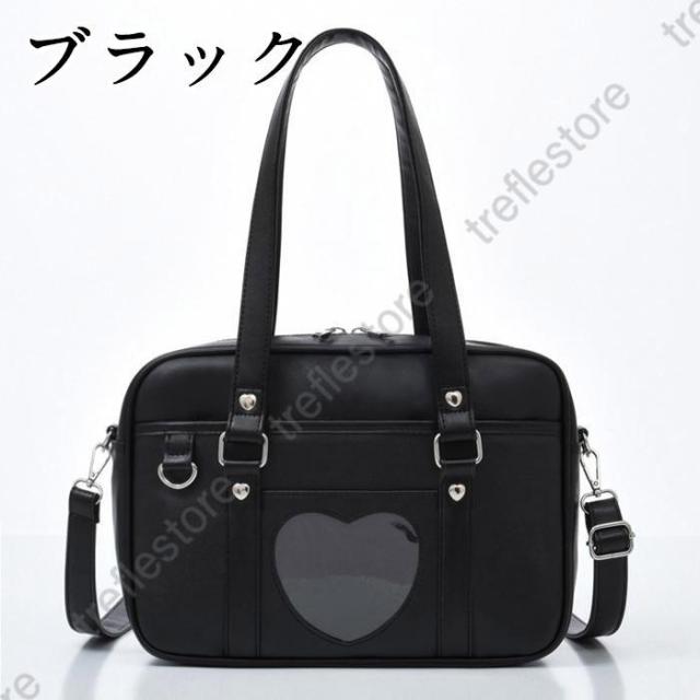 【ポイント5倍!】スクールバッグ 合皮 女子高生 スクバ ハート 2way ショルダーバッグ 肩掛け 斜めがけ Dカン付き 大容量 女子 高校生 通学 部活
