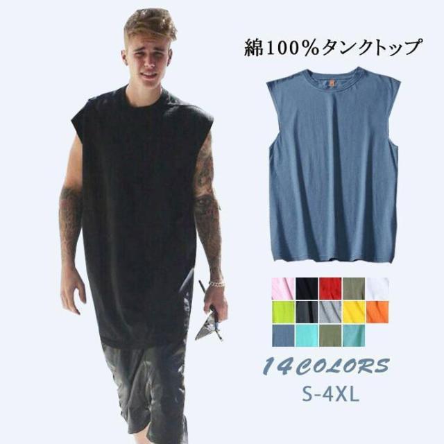 【ポイント5倍!】タンクトップ メンズ 肌着 無地 ノースリーブ ゆったり コットン 綿100% 通気性 スポーツ 大きいサイズ スウェット トップス夏 夏物 新作