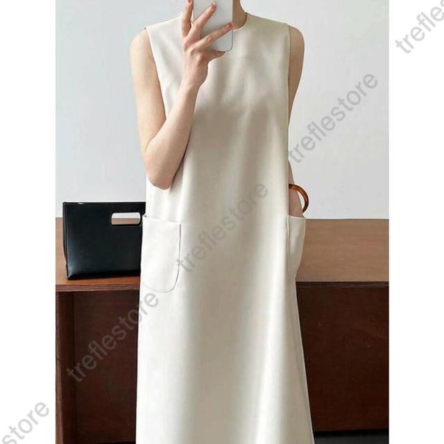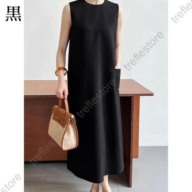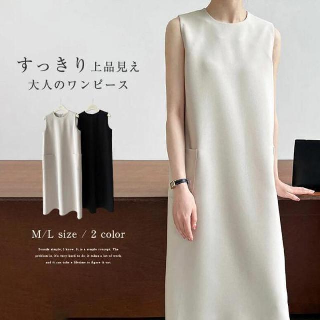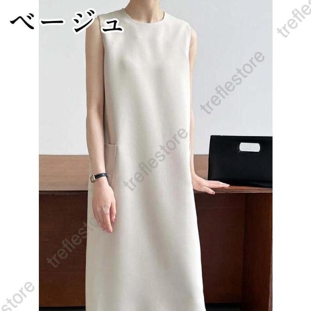 【ポイント5倍!】ワンピース 春 夏 レディース ノースリーブ ロング丈 Iライン きれいめ 夏 秋 ドレス ワンピース お洒落 体型カバー 着痩せ 華奢見え