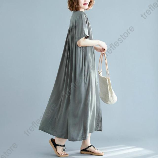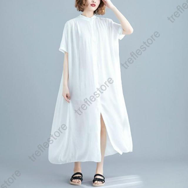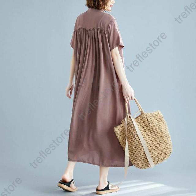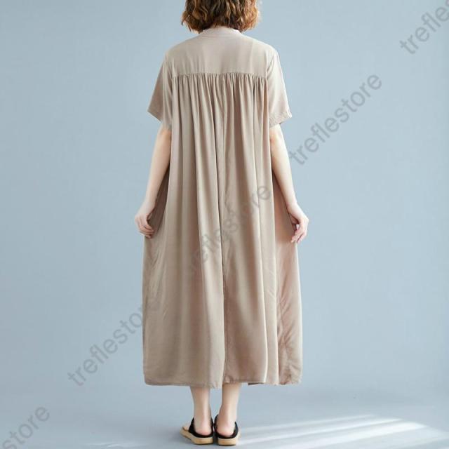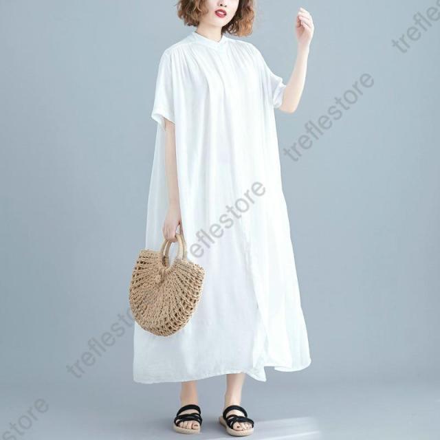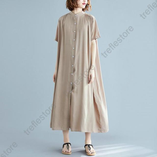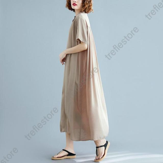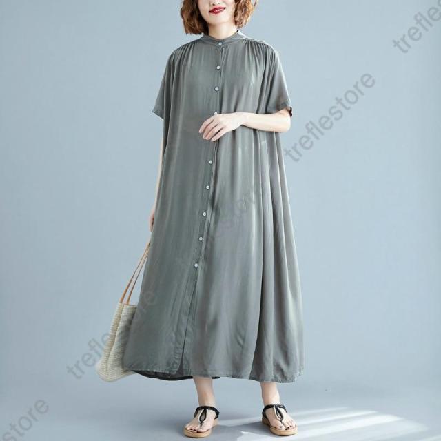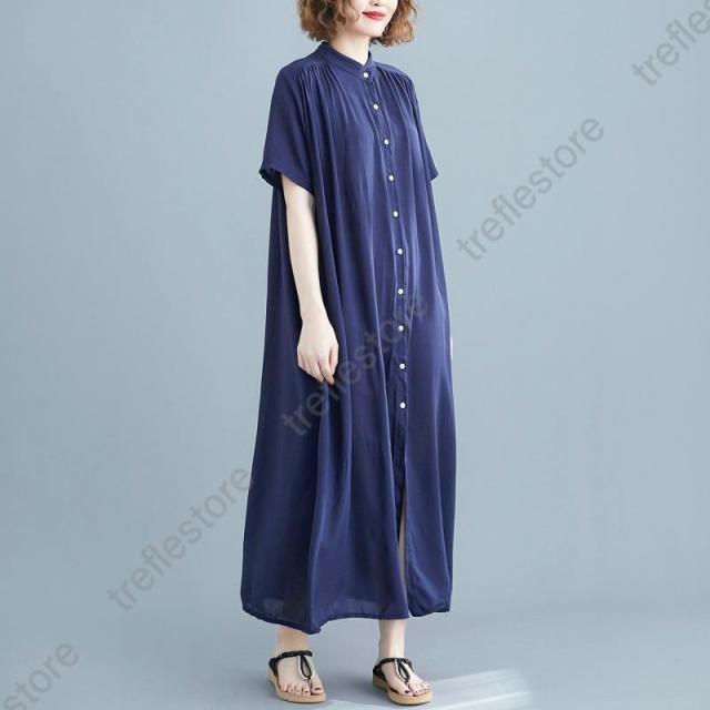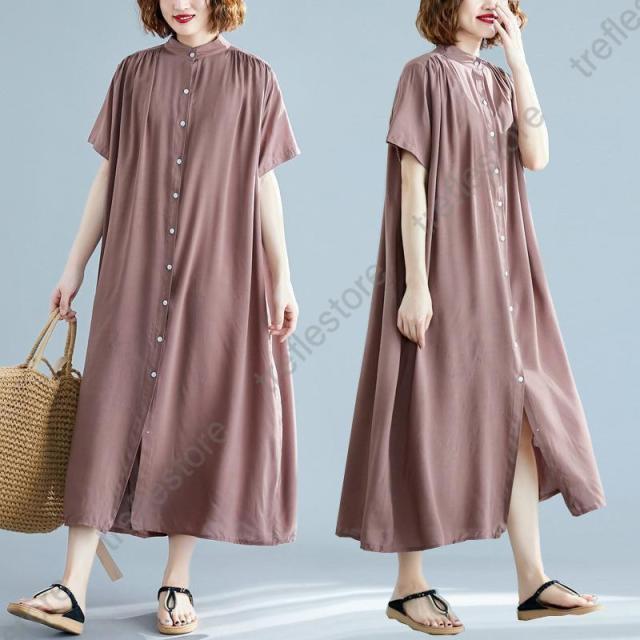 ワンピース ドレス レディース シャツ ロング丈 半袖 体型カバー 大きいサイズ マキシ 綿麻 リネン カジュアル 着痩せ 無地 ゆったり Aライン 春夏秋 お出かけ 部屋着 通勤 チュニック 20代 30代 40代 50代 無地 オーバーオール チュニック 着回し カジュアル 大きいサイズ マタニティ きれいめ
