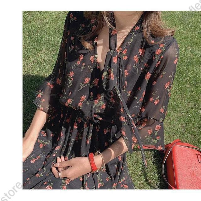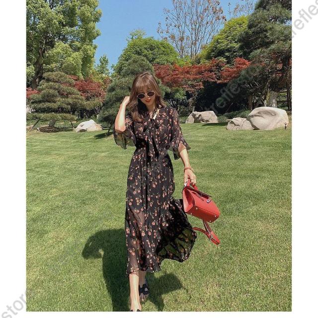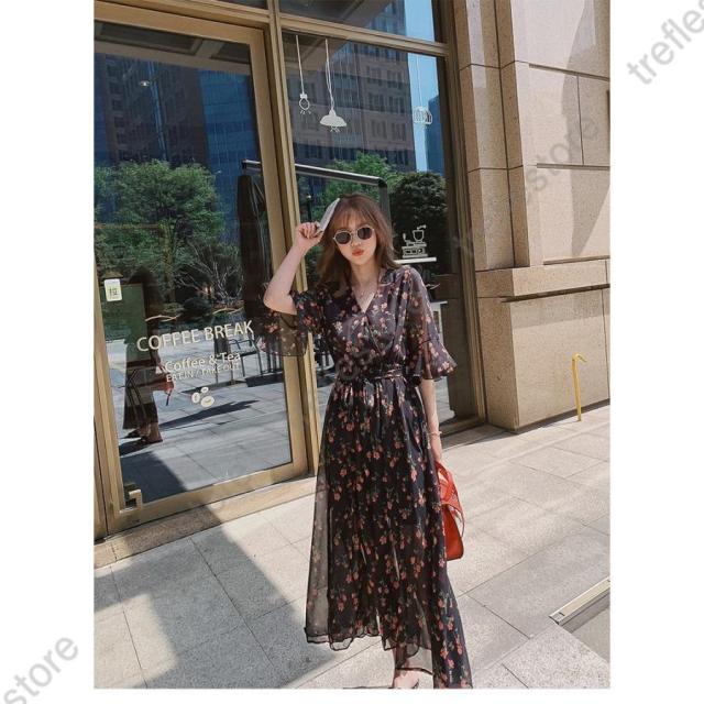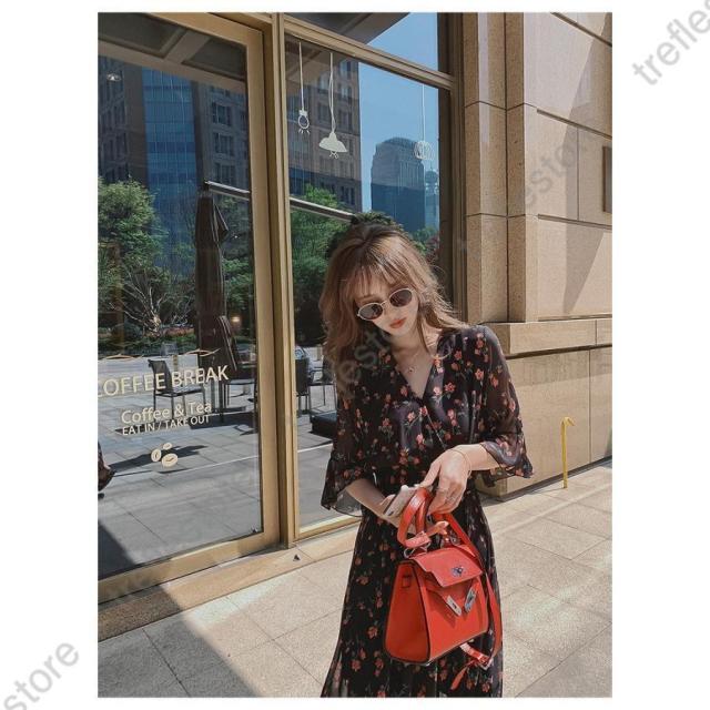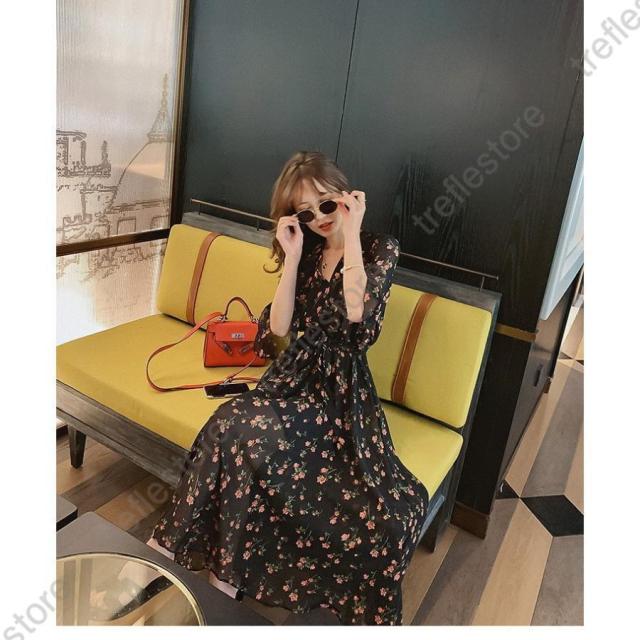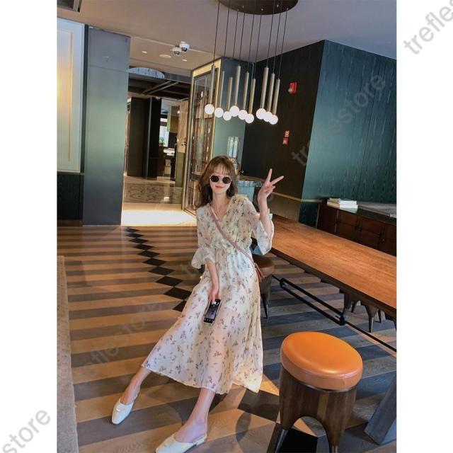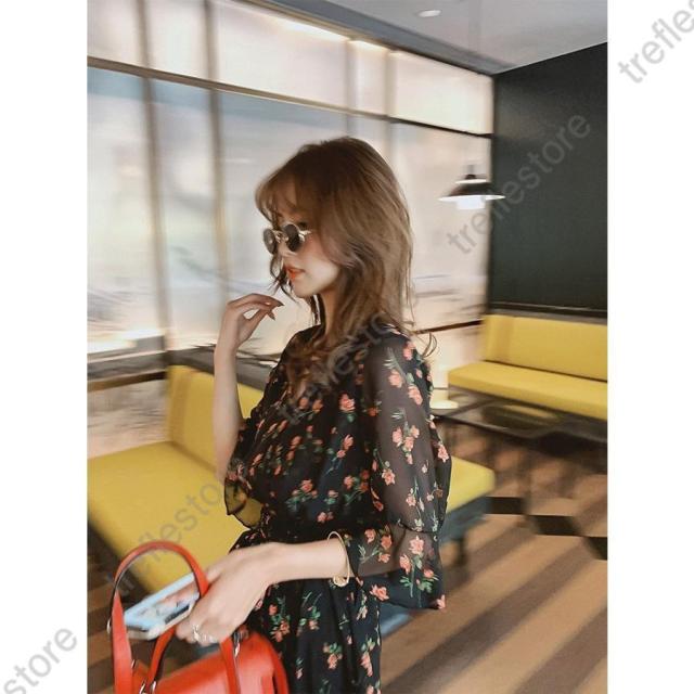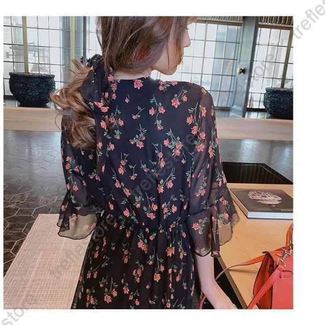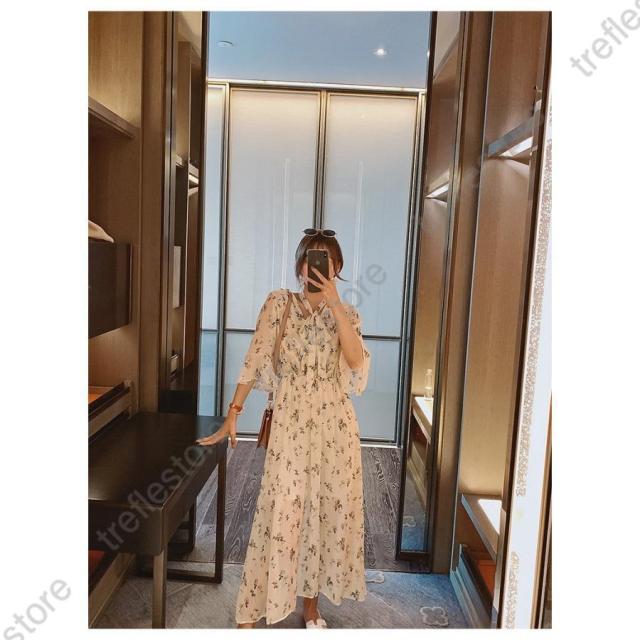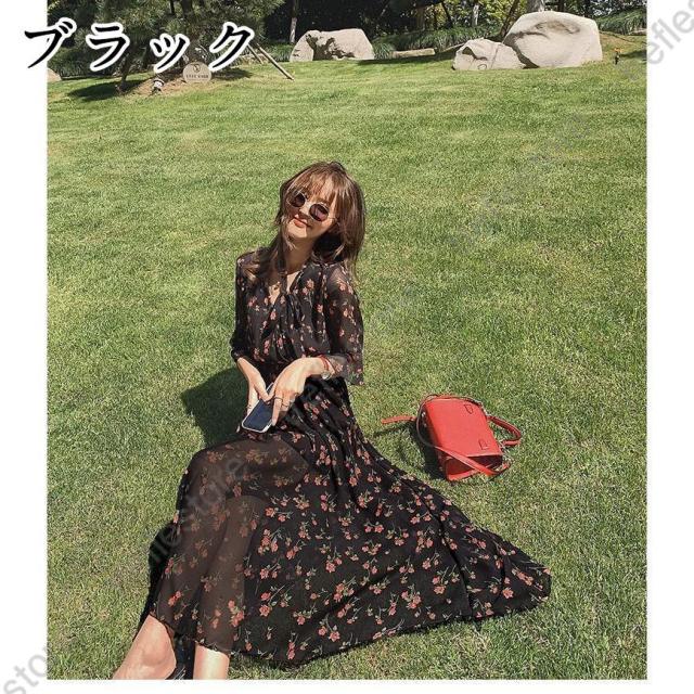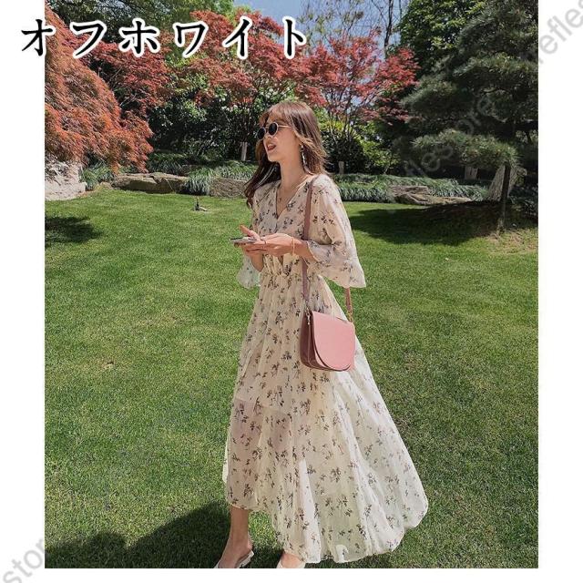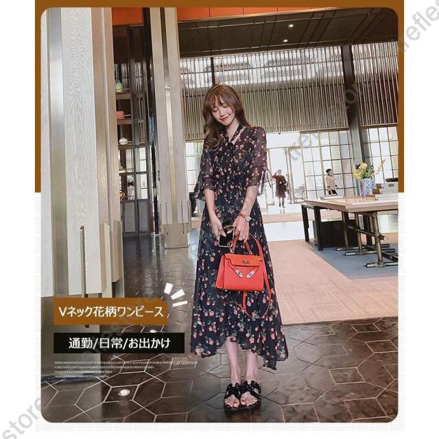 【ポイント5倍!】ワンピース レディース 40代ワンピース 春夏 五分袖 シフォンワンピース 花柄 マキシワンピース Vネック オシャレ 結婚式ドレス お出かけ 大人 30代 50代