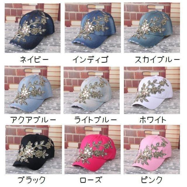 【ポイント5倍!】キャップ 帽子 レディース 女性 ファッション小物 野球帽 ビジュー ラインストーン 花 フラワー 刺繍風 かわいい おしゃれ