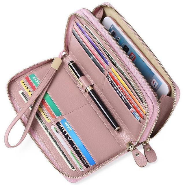 ロングウォレッ 軽い スマホが入る シンプル 無地 多収納 男女兼用 二つ折り財布 2つ折り カードがたくさん入る ふたつ折り 薄い 薄型 スリム ァスナー 多機能 iphone 可愛い カジュアル ナチュラル スマー 便利 高級感 使いやすい 大きめ