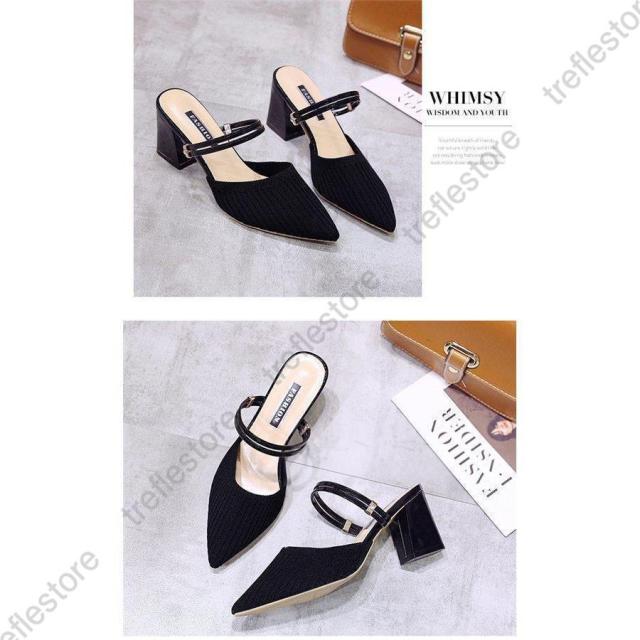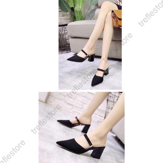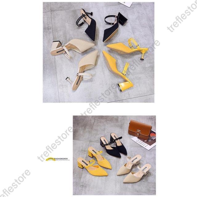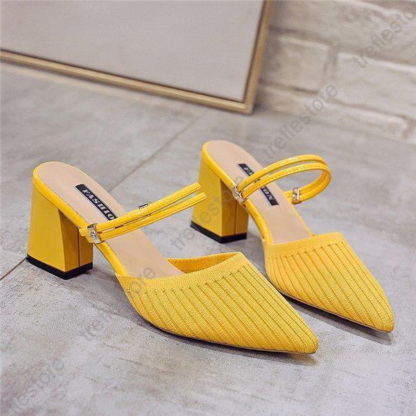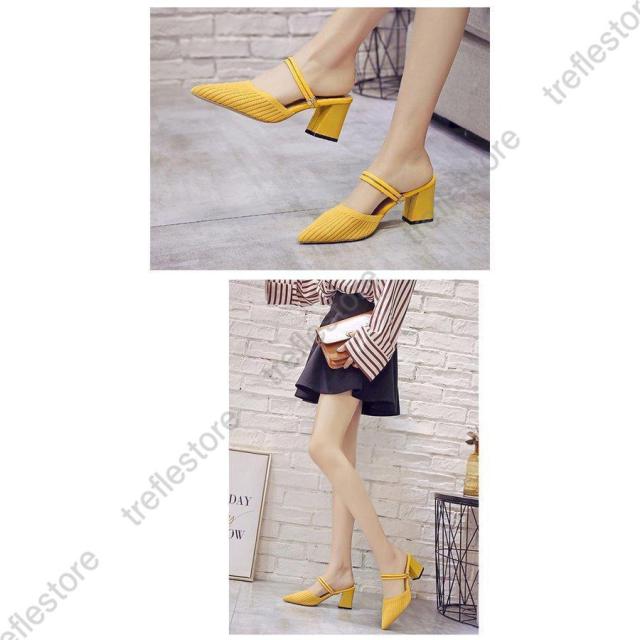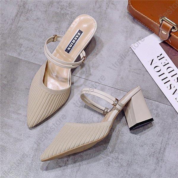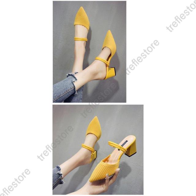 サンダル ハイヒール ミュール 太いヒール 2way ニット 弾性あり レディース パンプス シューズ 美脚 歩きやすい 疲れにくい 走れる パーティ