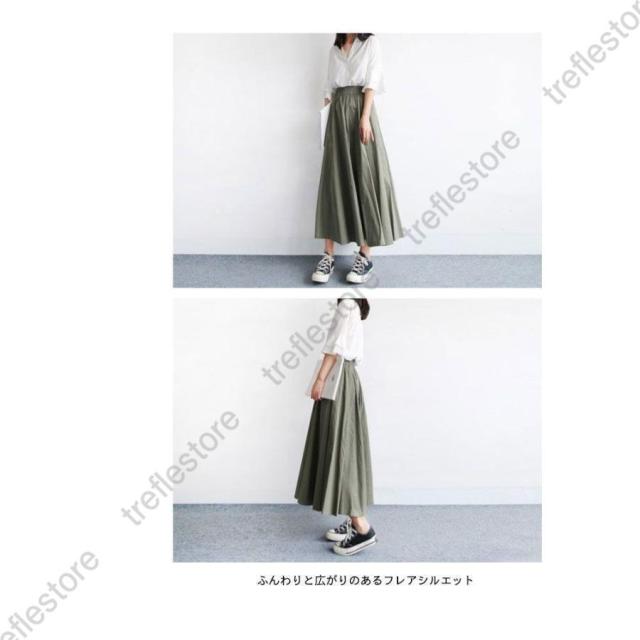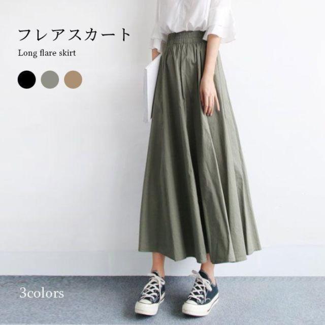 【ポイント5倍!】フレアスカート レディース ロングスカート ミモレスカート ロング丈 ミモレ丈 フレア スカート 無地 ゆったり ふんわり お洒落 カジュアル