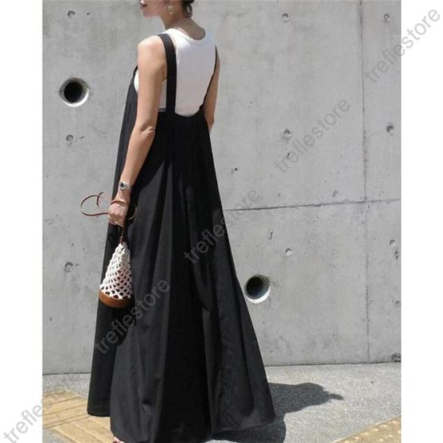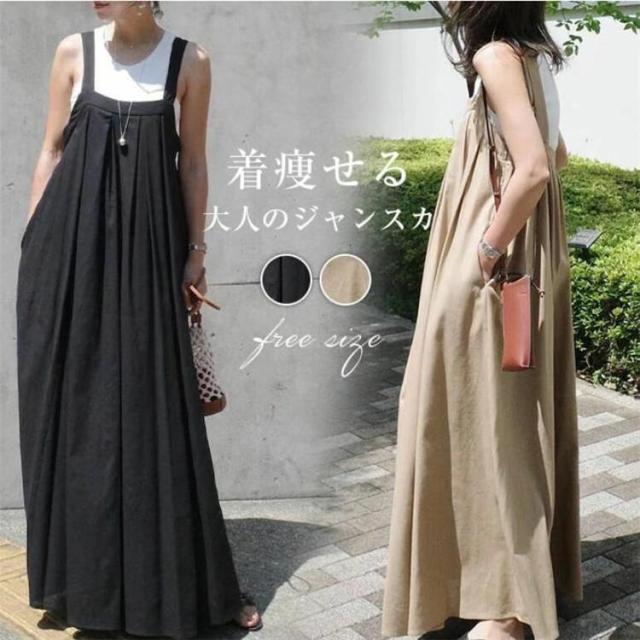 ジャンパースカート レディース サロペット スカート ジャンスカ マキシ丈 ノースリーブ 春 秋 サロペットスカート 大人 ノースリーブ 無地 大きいサイズ 体型カバー ゆったり カジュアル シンプル ブラック 黒 ワンピース ママコーデ 20代 30代 40代 シンプル 通勤 通学 お出掛け お食事会 パーティ フォーマル カジュアル 女子会 発表会 演奏会 同窓会 卒業式 入学式 卒園式 成人式 オフィス ビジネス セレモニー 10代 20代 30代 40代 50代 60代
