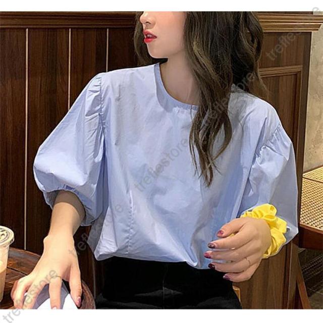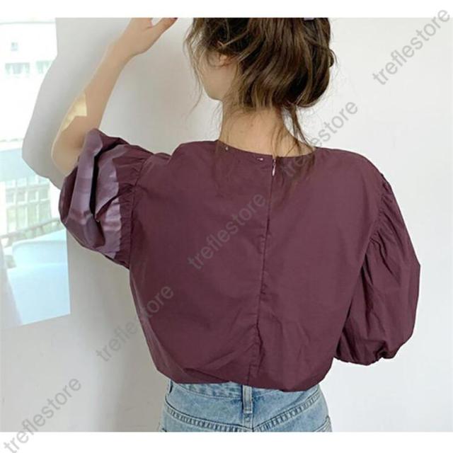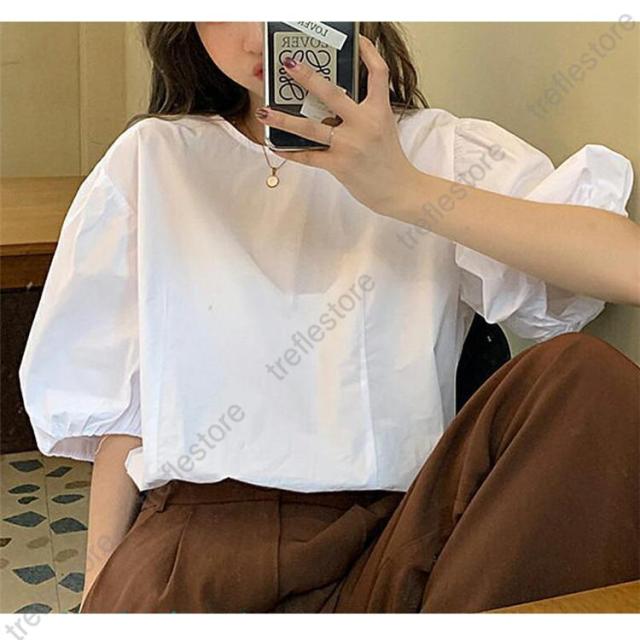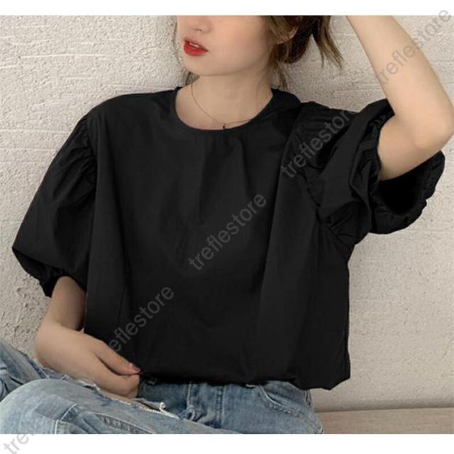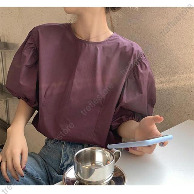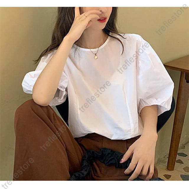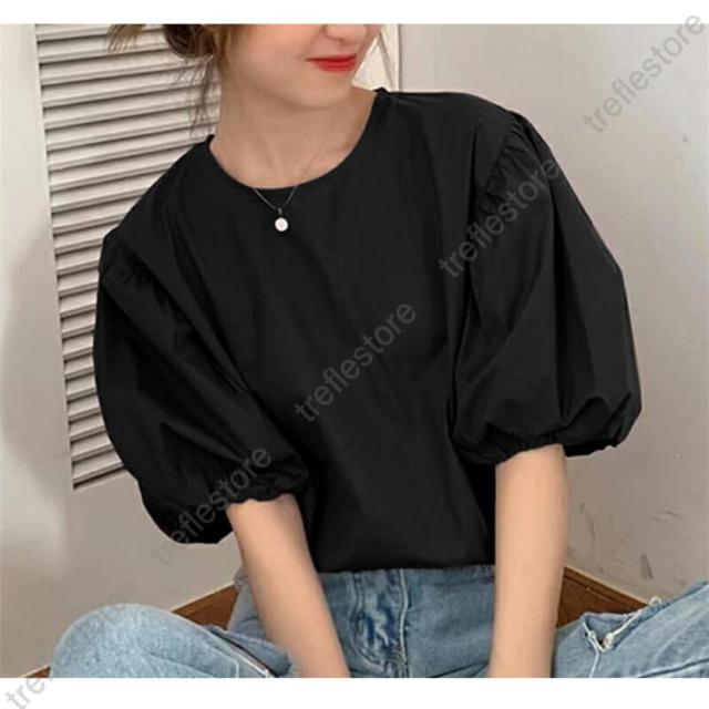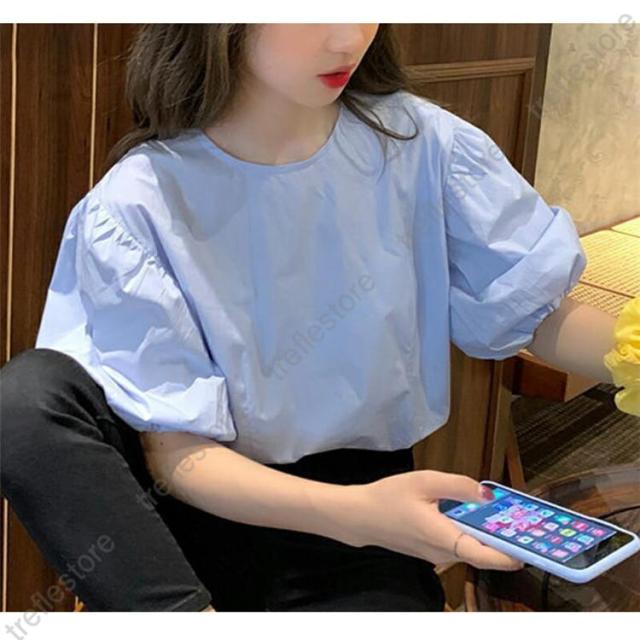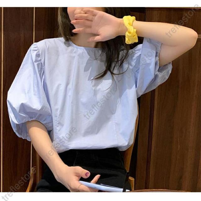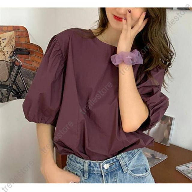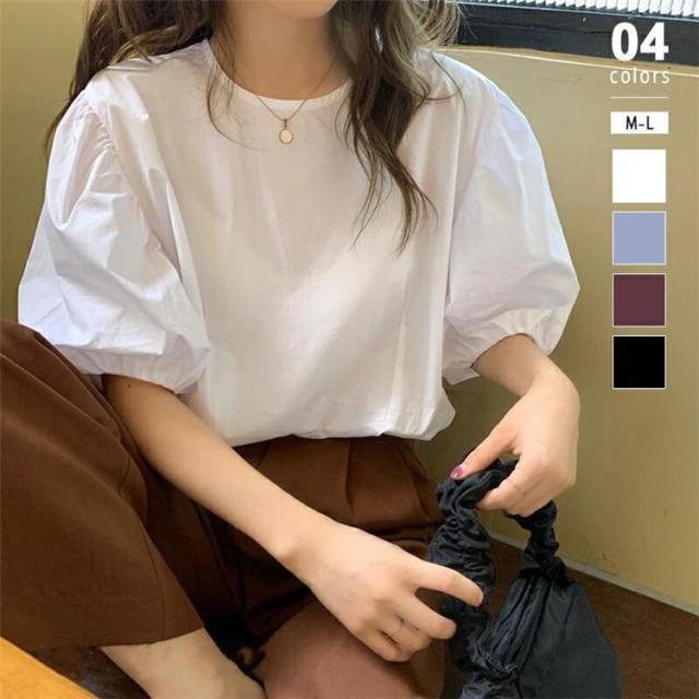 パフスリーブ ブラウス バルーンスリーブ 半袖 トップス レディース 五分袖 ボリューム ボリューム袖 ボリューム袖ブラウス ボリュームスリーブ ボリュームスリーブブラウス シフォン ぽわん袖 ぽわん ポワン袖 ゆったり 体型カバー 二の腕カバー バルーン袖 プルオーバー 細見え シャツ ブラウス 丸襟 クルーネック ノーカラー セレモニー シンプル 無地 綿 コットン ポリエステル 華やか オフィス オフィスカジュアル カジュアル フェミニン ガーリー 上品 キレイめ きれいめ 大人 かわいい 大人可愛い おしゃれ ママ ママコーデ 母 通勤 通学 春コーデ 夏コーデ 春服トップス 夏服トップス 春夏新作